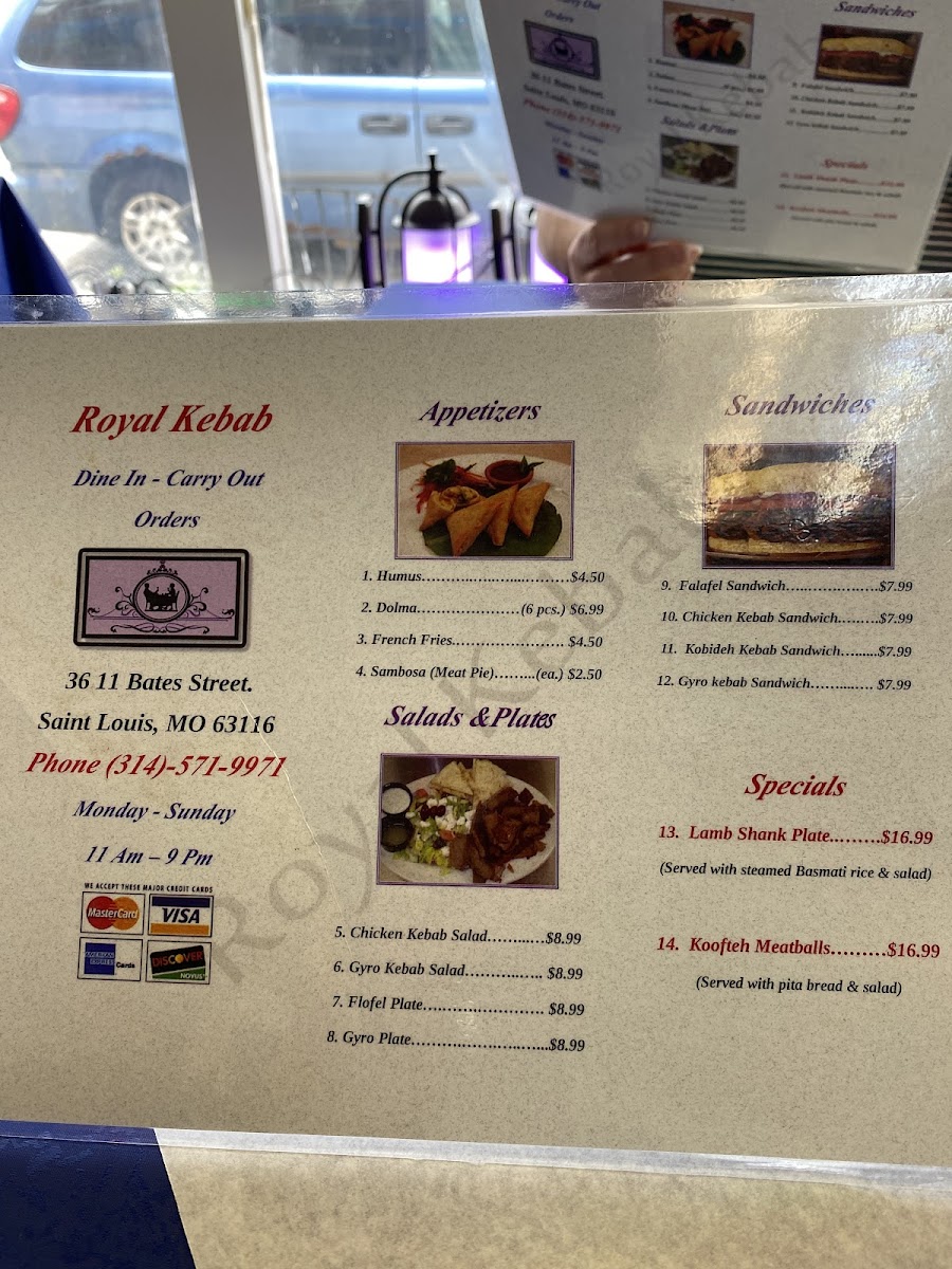 Welcome to Royal Kebab Persian Cuisine, a delightful gem nestled in St. Louis, MO. This restaurant serves an exquisite array of dishes that promise to transport your taste buds to Persia. Their menu showcases a variety of enticing options, from the crispy Falafel Sandwich and flavorful Fish Fillet Sandwich for just $5.50, to satisfying entrees like the Chicken Shish Kebab, which comes with grilled tomatoes, basmati rice, and salad for $10.99.